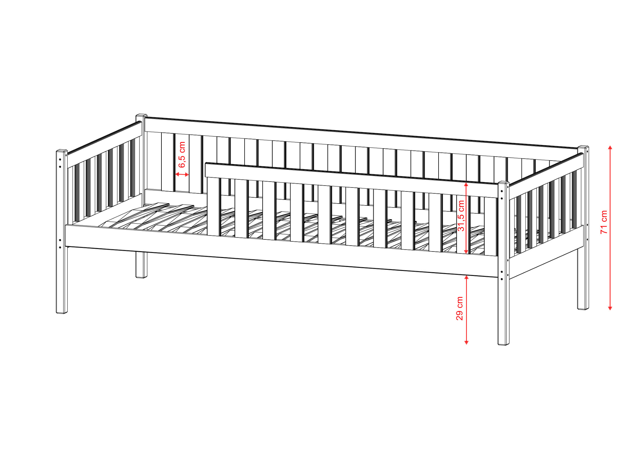 Kinderbed ADA heeft een hoogte die je als ouder zult waarderen. Het is een detail dat dagelijks een groot verschil maakt. Je hoeft je niet ver te bukken bij elke verschoning van het beddengoed, het terugleggen van je kleintje na een dutje of bij het ochtendritueel. Je rug zal je dankbaar zijn – zeker als het de derde keer die nacht is. Kinderbed ADA is ontworpen met het comfort van het hele gezin in gedachten. Het heeft een stabiele constructie die veiligheid biedt tijdens nachtelijke manoeuvres en tijdens het spelen. Je kind kan dansen, rollen en springen – en jij weet dat alles veilig is.