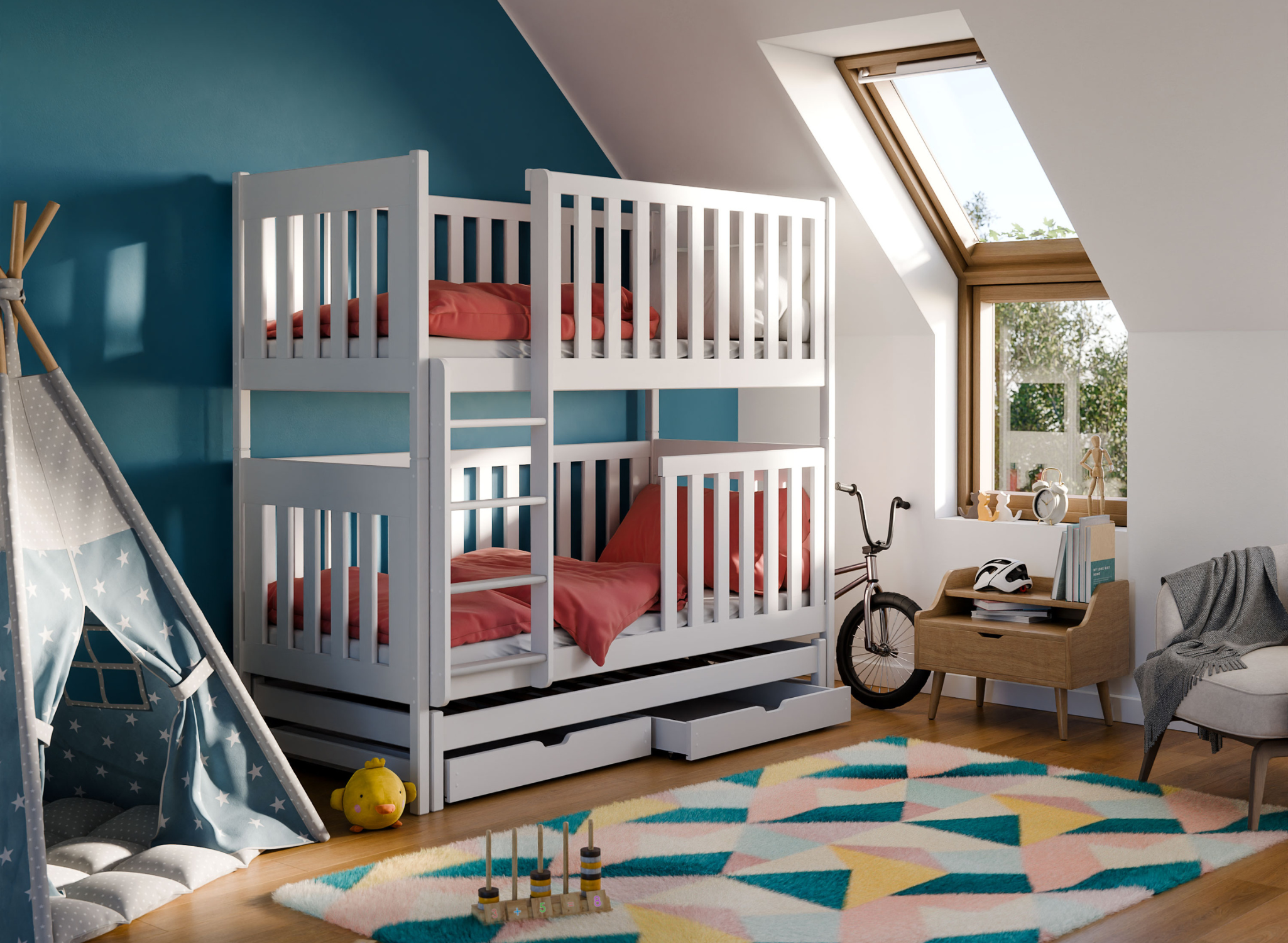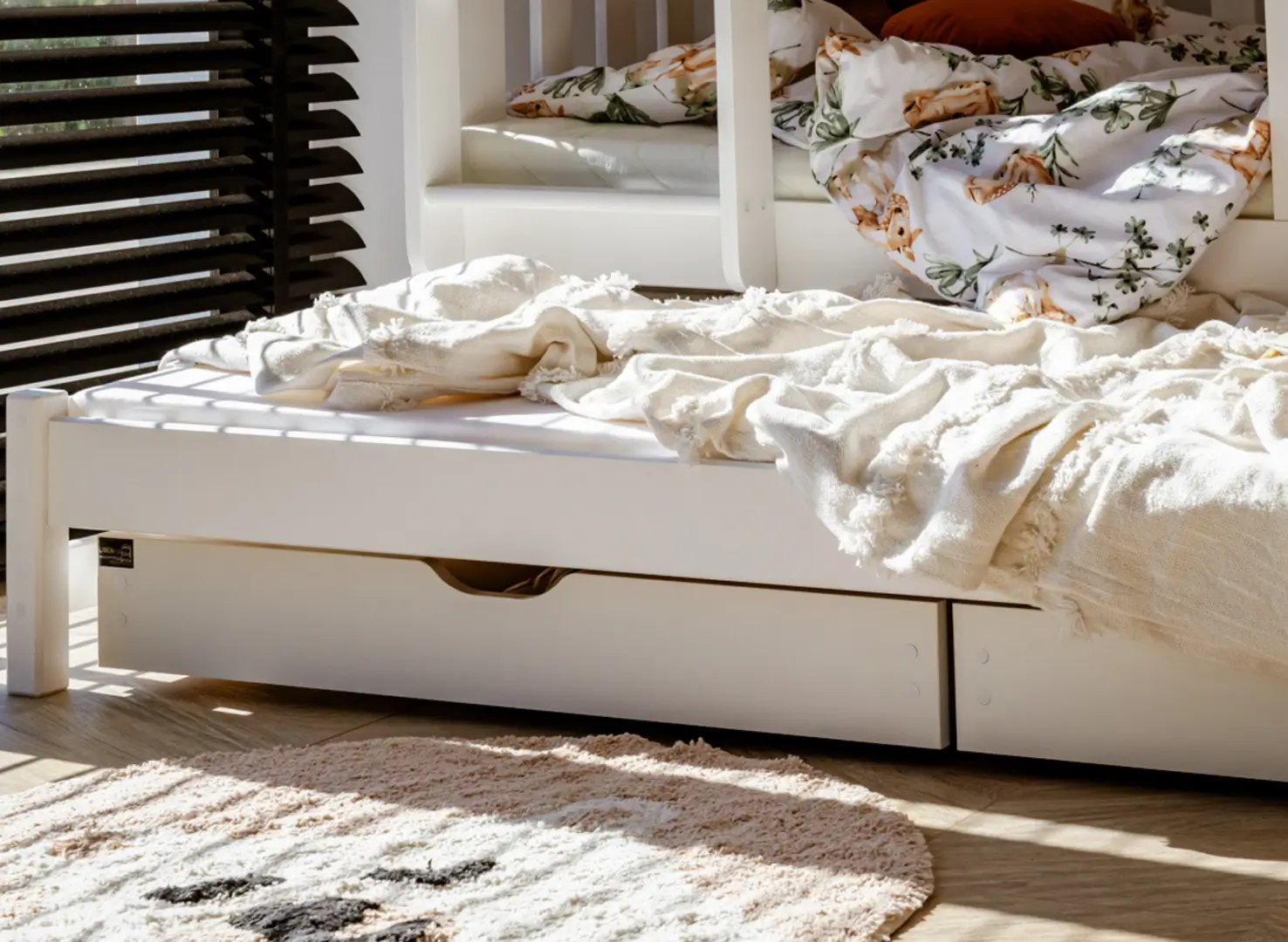 Praktische lades verborgen in het bed – wit EMILKA stapelbed