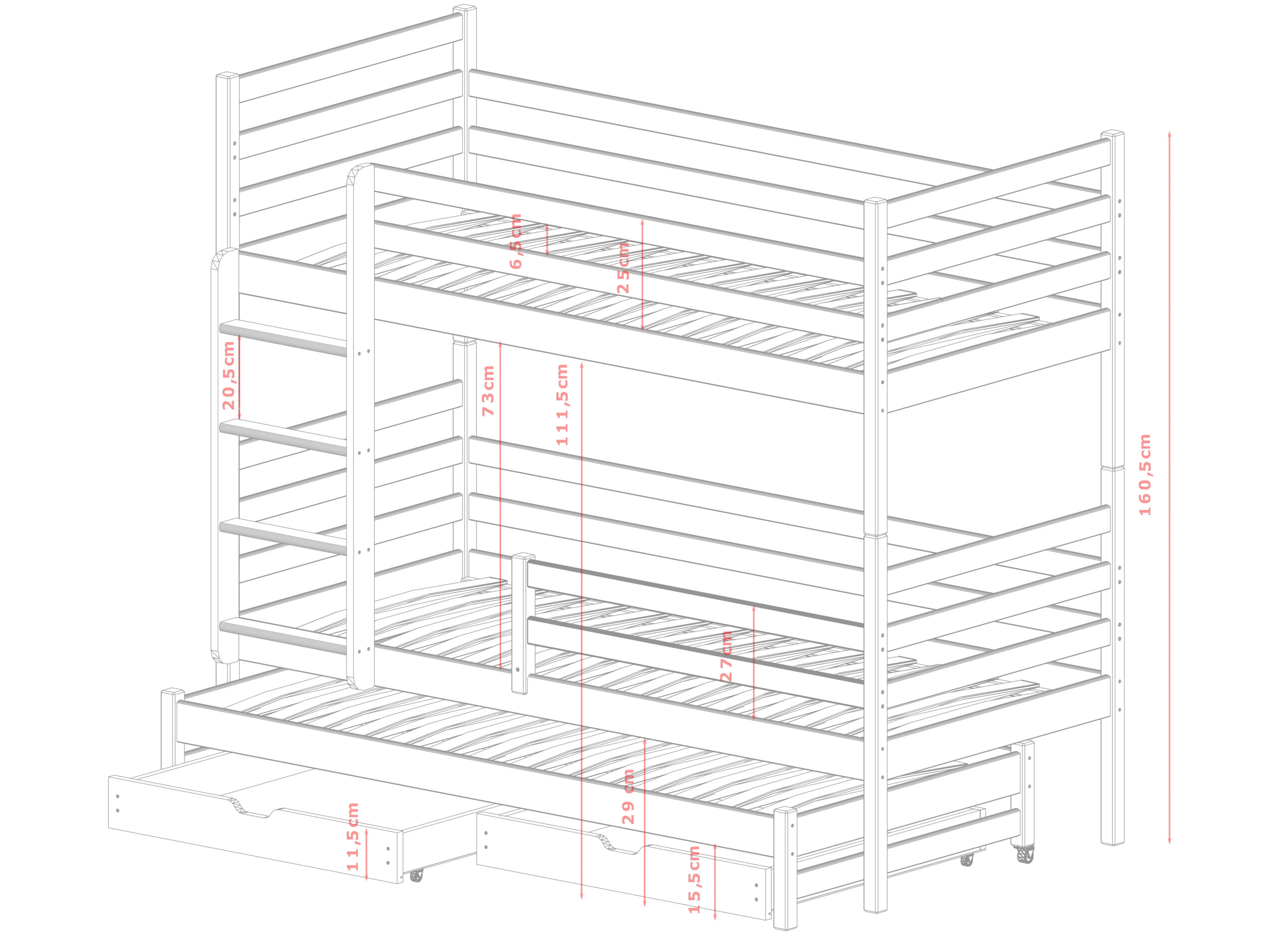 Ben je van plan een kleine renovatie thuis? Of bereid je misschien een kamer voor broers en zussen voor? Hoe lang je ook al op zoek bent naar de juiste meubels voor de kamer van je kinderen, je moet zeker het aanbod van Lano Furniture bekijken. Wij selecteren zorgvuldig de materialen die worden gebruikt voor onze kinderbedden. Het is niet de moeite waard compromissen te sluiten. Kies het LUK stapelbed en geniet van alles wat het te bieden heeft.