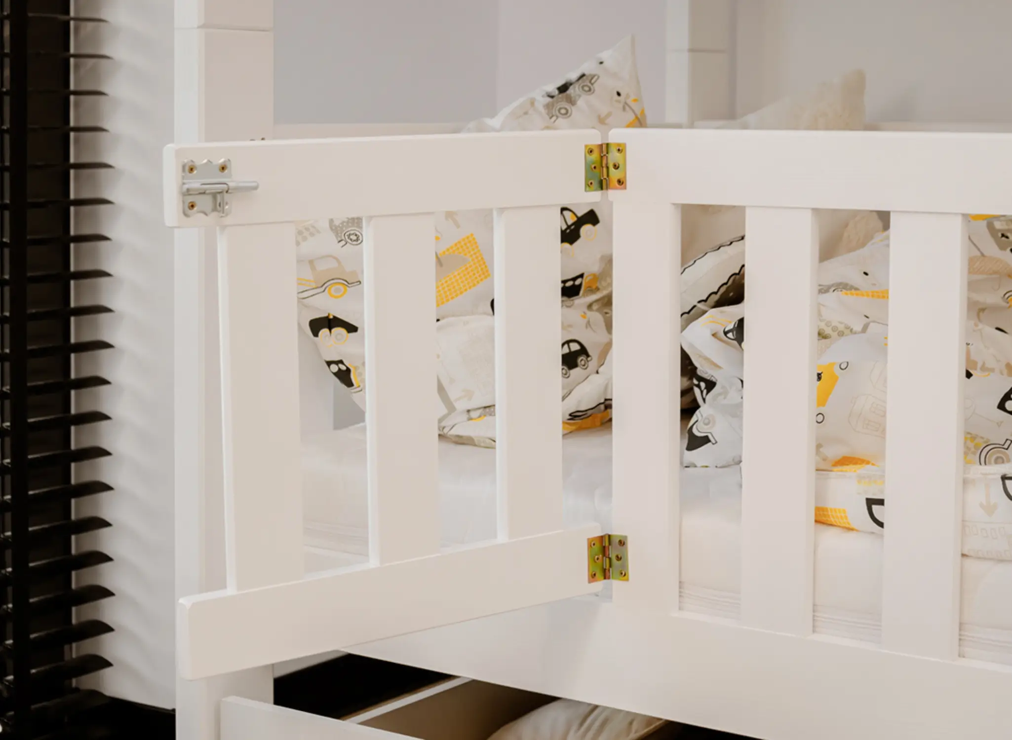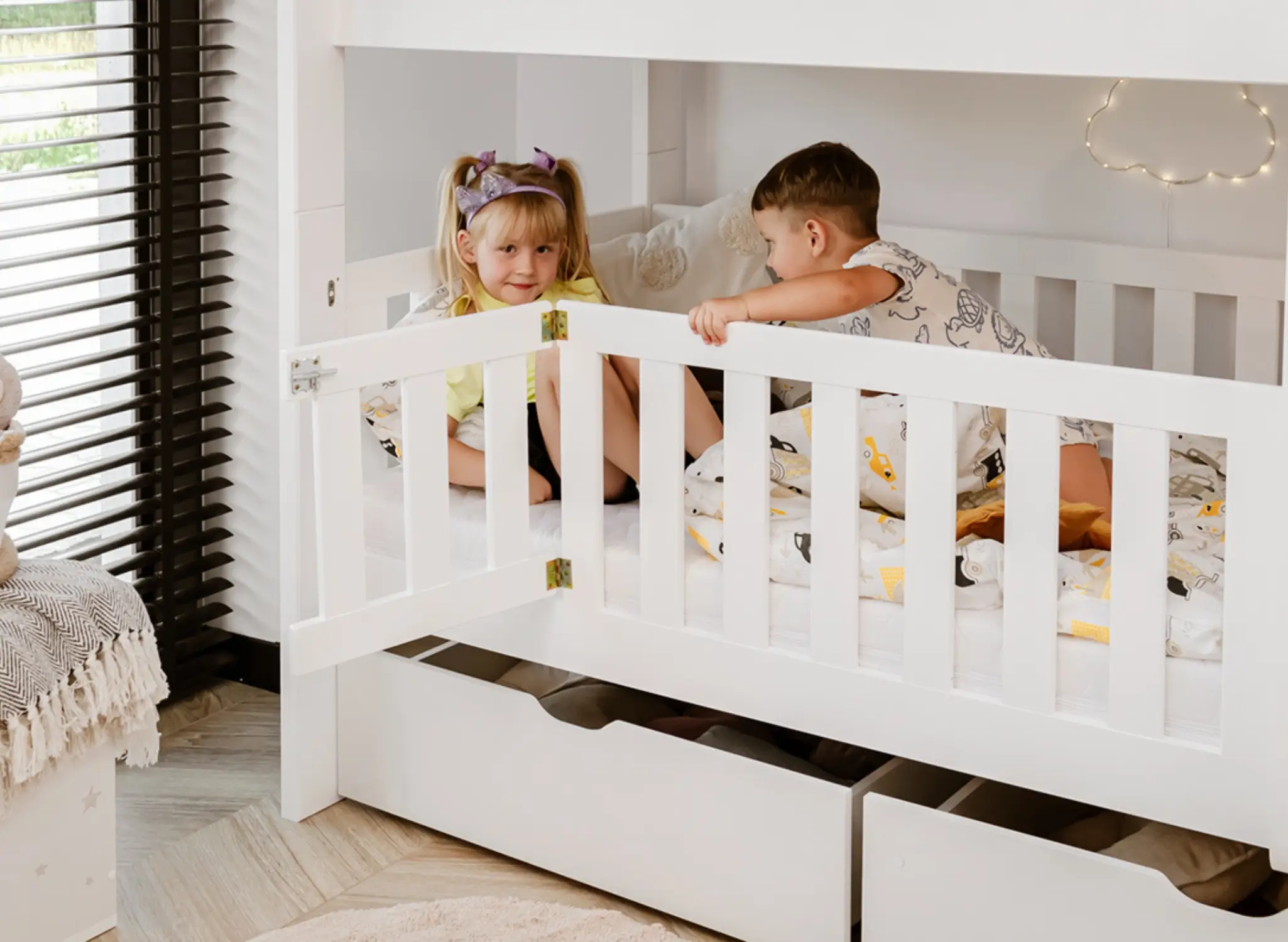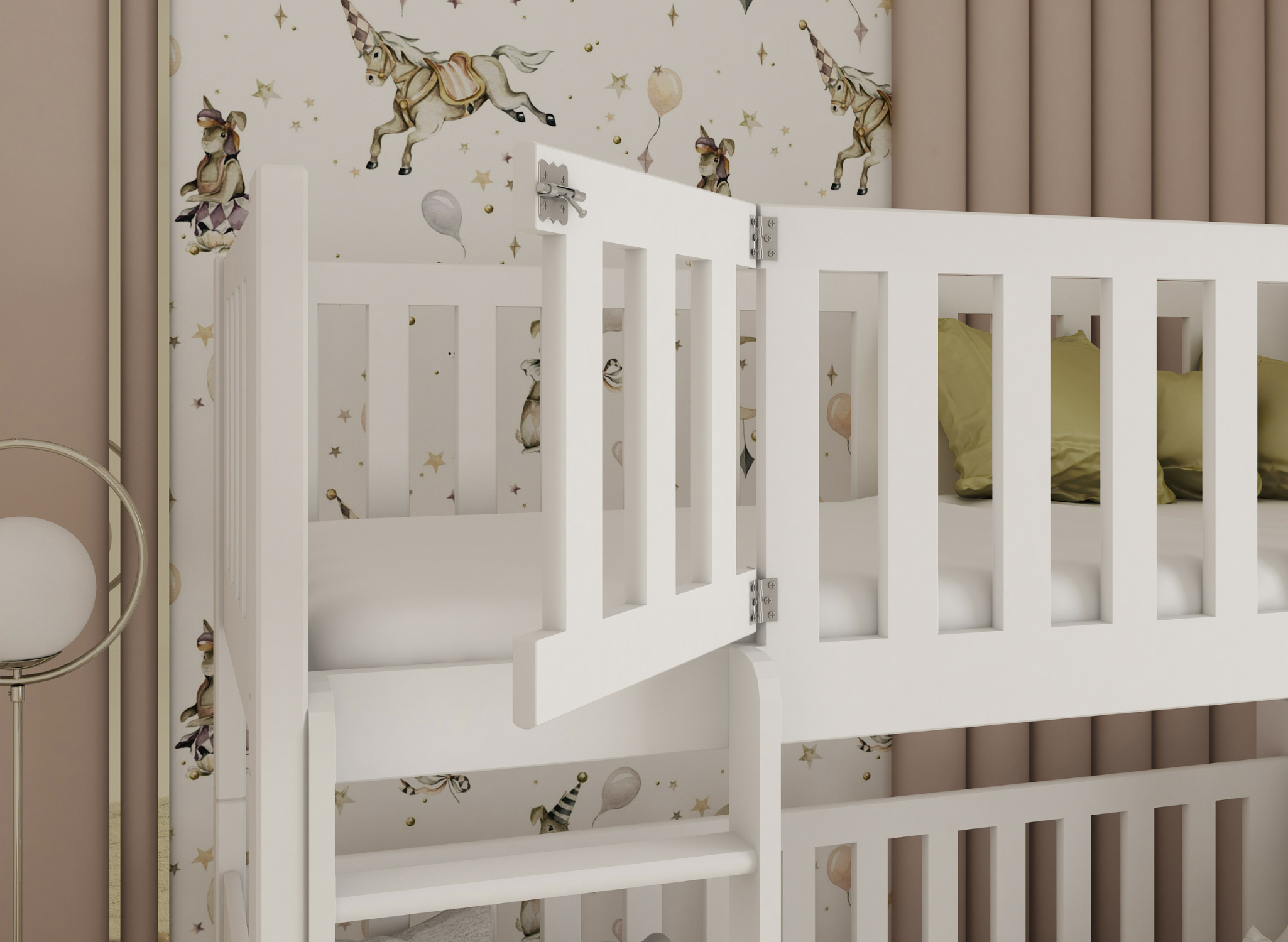Een kinderkamer is een unieke, magische ruimte, soms surrealistisch, soms minimalistisch. Het stapelbed KSAWERY van Lano Meubels is zo ontworpen dat het in elk interieur past. Het heeft een uiterst eenvoudig ontwerp zonder enige versieringen of decoratieve elementen. Het is ontworpen in een moderne geometrische vorm en tegelijkertijd klassiek uitgebreid gemaakt van grenenhout en uitgerust met functionele oplossingen. De veiligheid van kinderen is onze topprioriteit. Het KSAWERY stapelbed is voorzien van hoge leuningen. De voorste maken het mogelijk om het slaapgedeelte volledig af te sluiten. Tegelijkertijd zijn ze opvouwbaar, zodat het kind er gemakkelijk in en uit kan stappen. 's Nachts blijven de hekken gesloten. Dankzij deze eigenschap is het KSAWERY stapelbed een veilige slaapplaats.