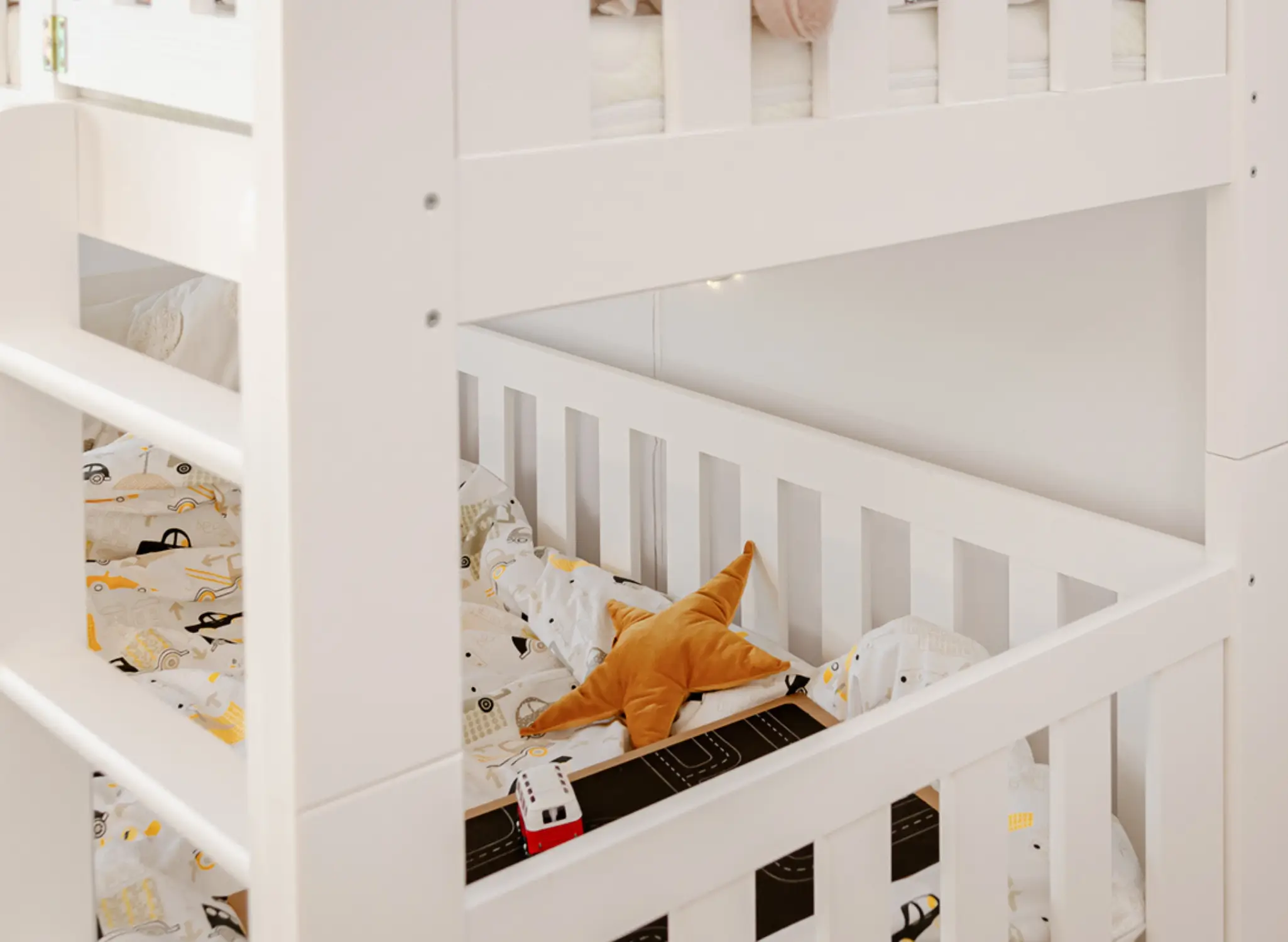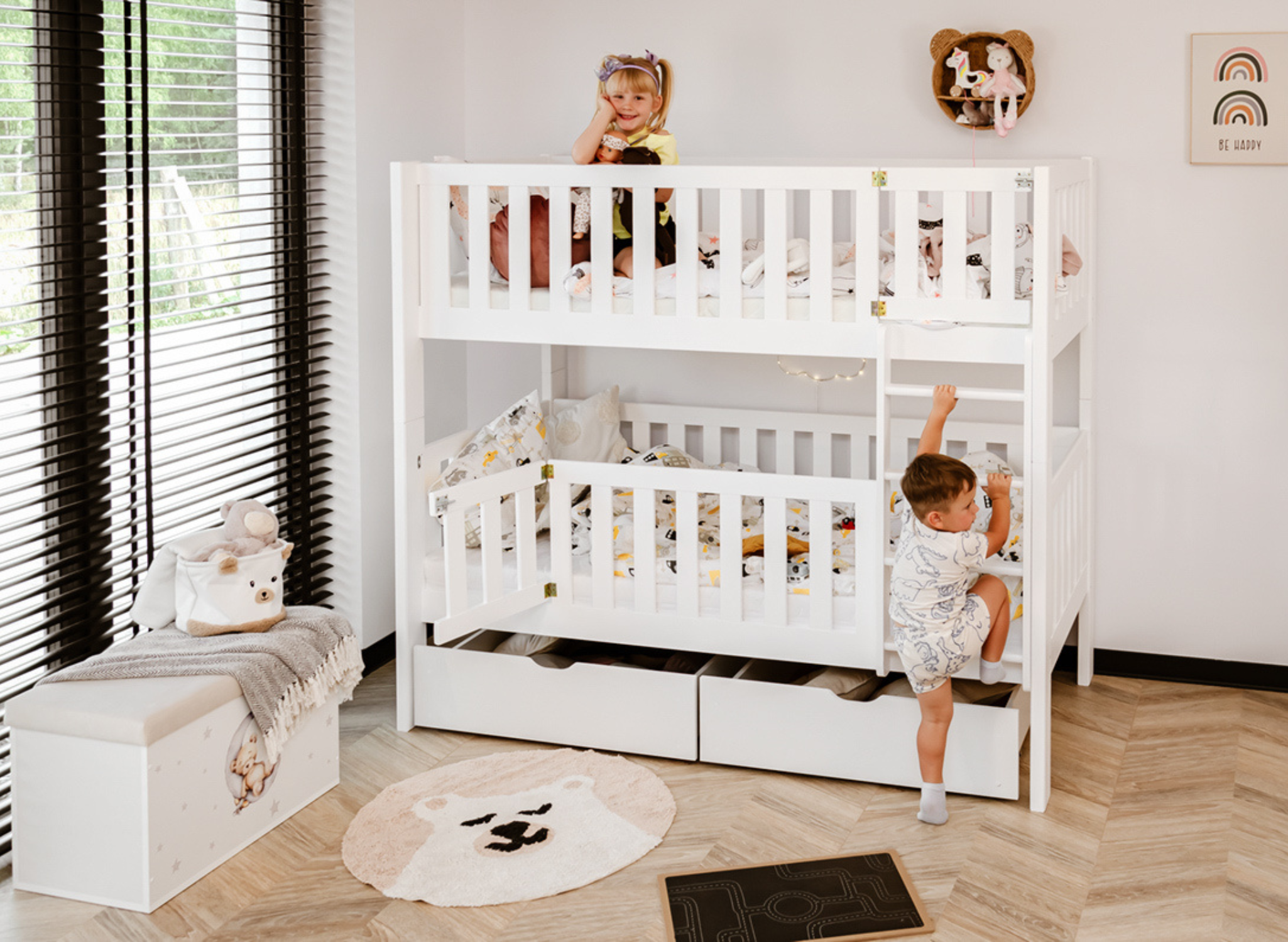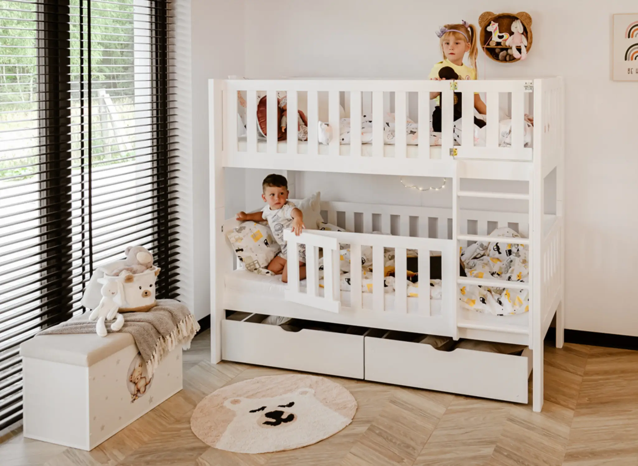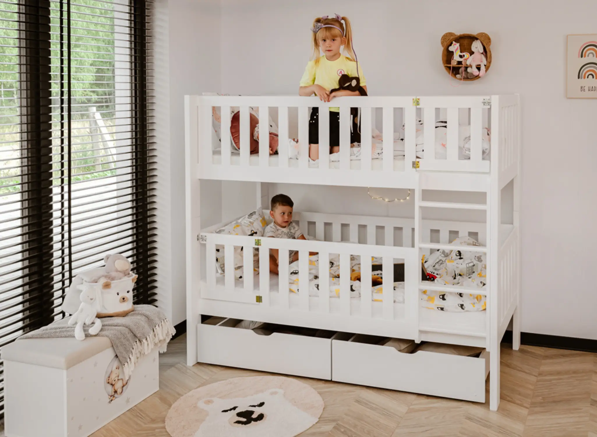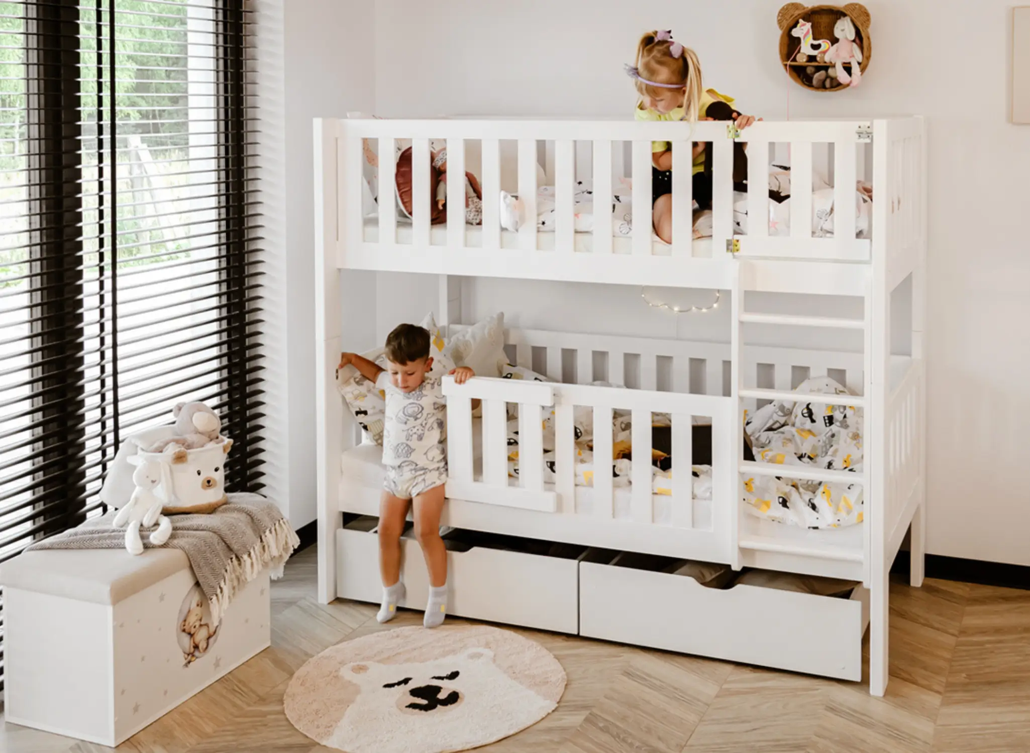 Pas het witte KSAWERY stapelbed aan op de slaapkamer van uw kind