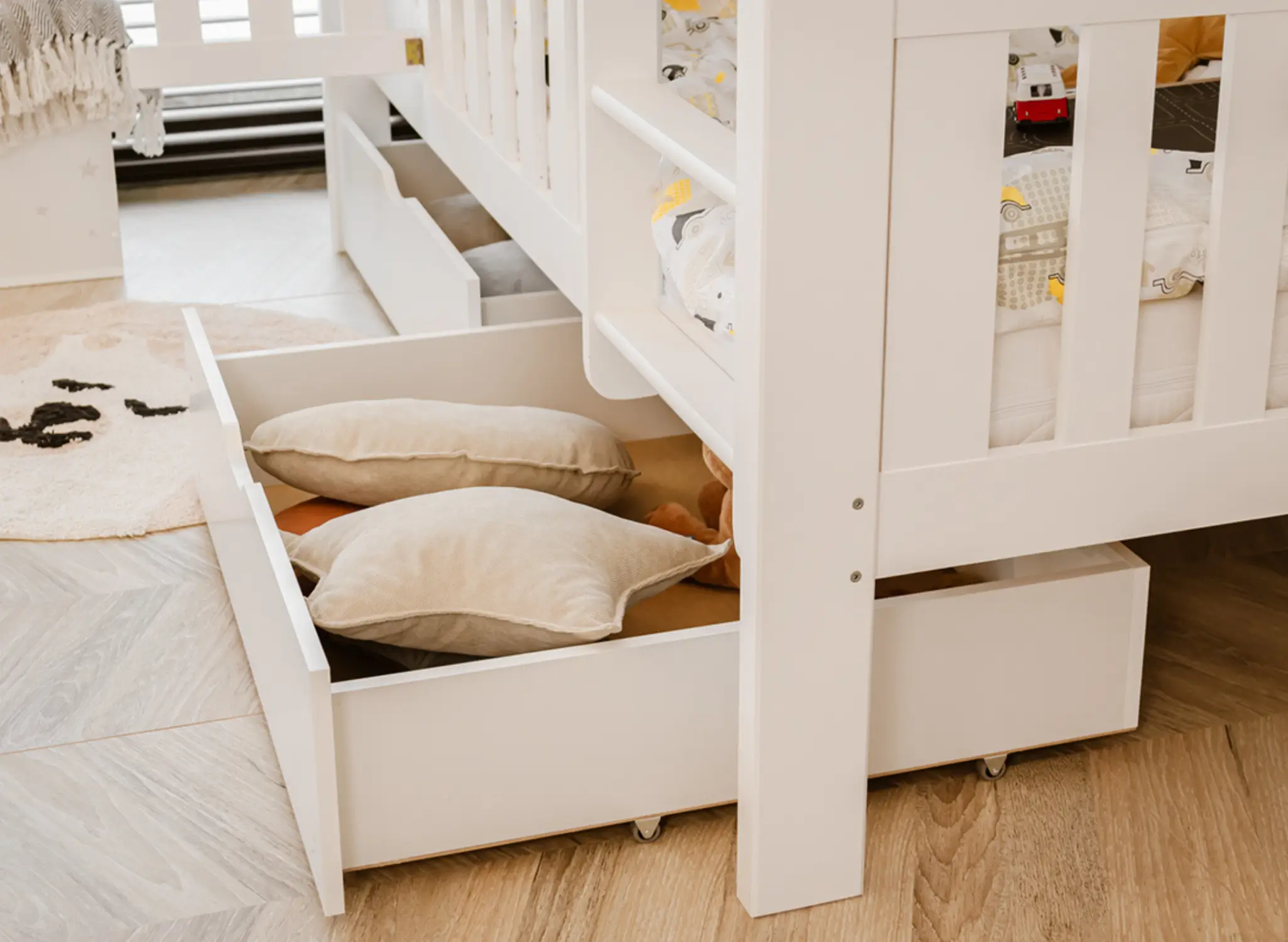 Bij Lano Meubels ontwerpen we kinderbedden samen met ouders. Voordat u het KSAWERY stapelbed bestelt, dient u zich te informeren over de soorten matrassen en te kiezen voor de optie met of zonder lade. Hierdoor kunt u het meubelstuk goed aanpassen aan de kinderkamer en hun behoeften.