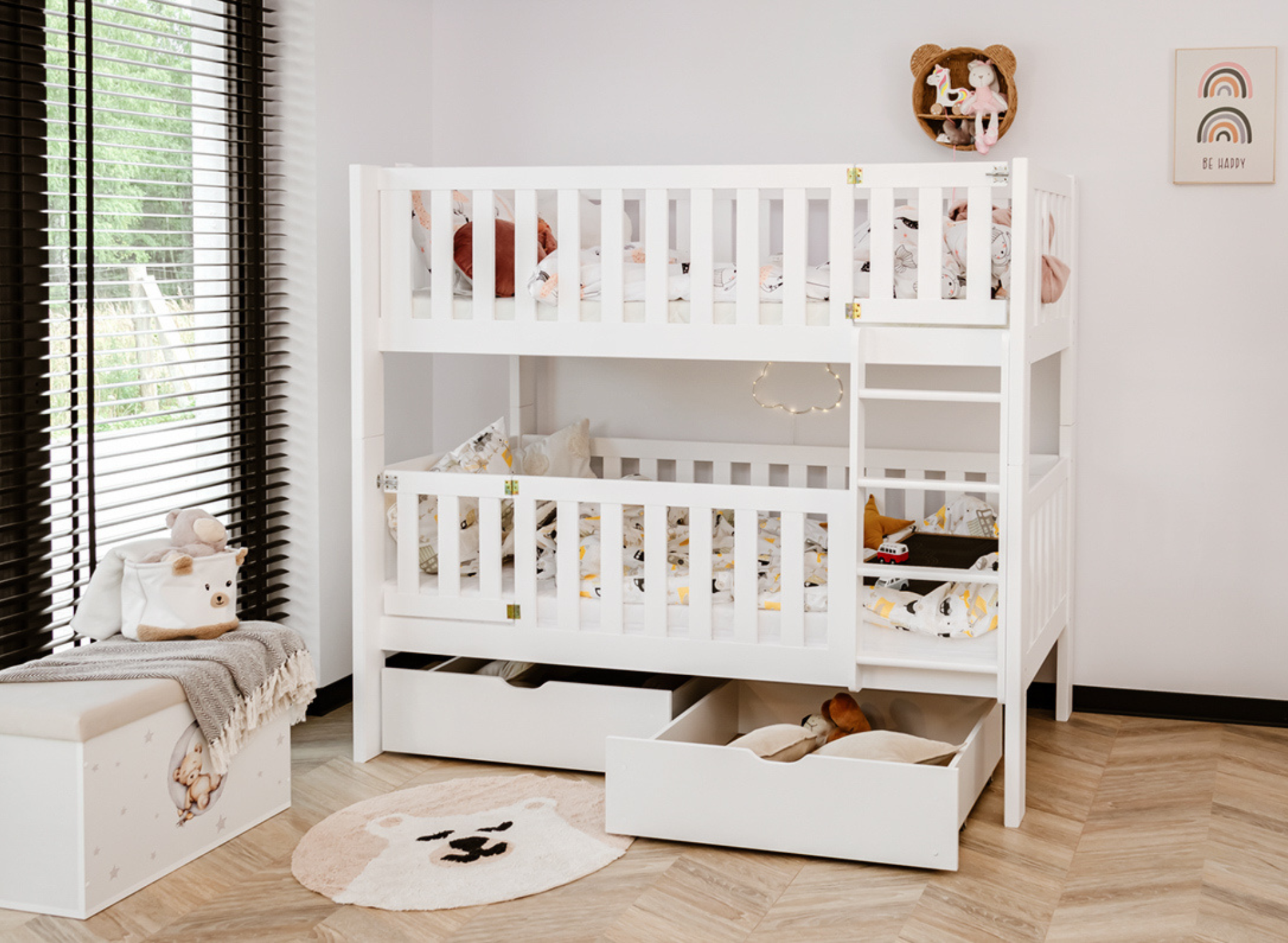 Wit houten stapelbed van KSAWERY – een solide meubelstuk dat jarenlang meegaat