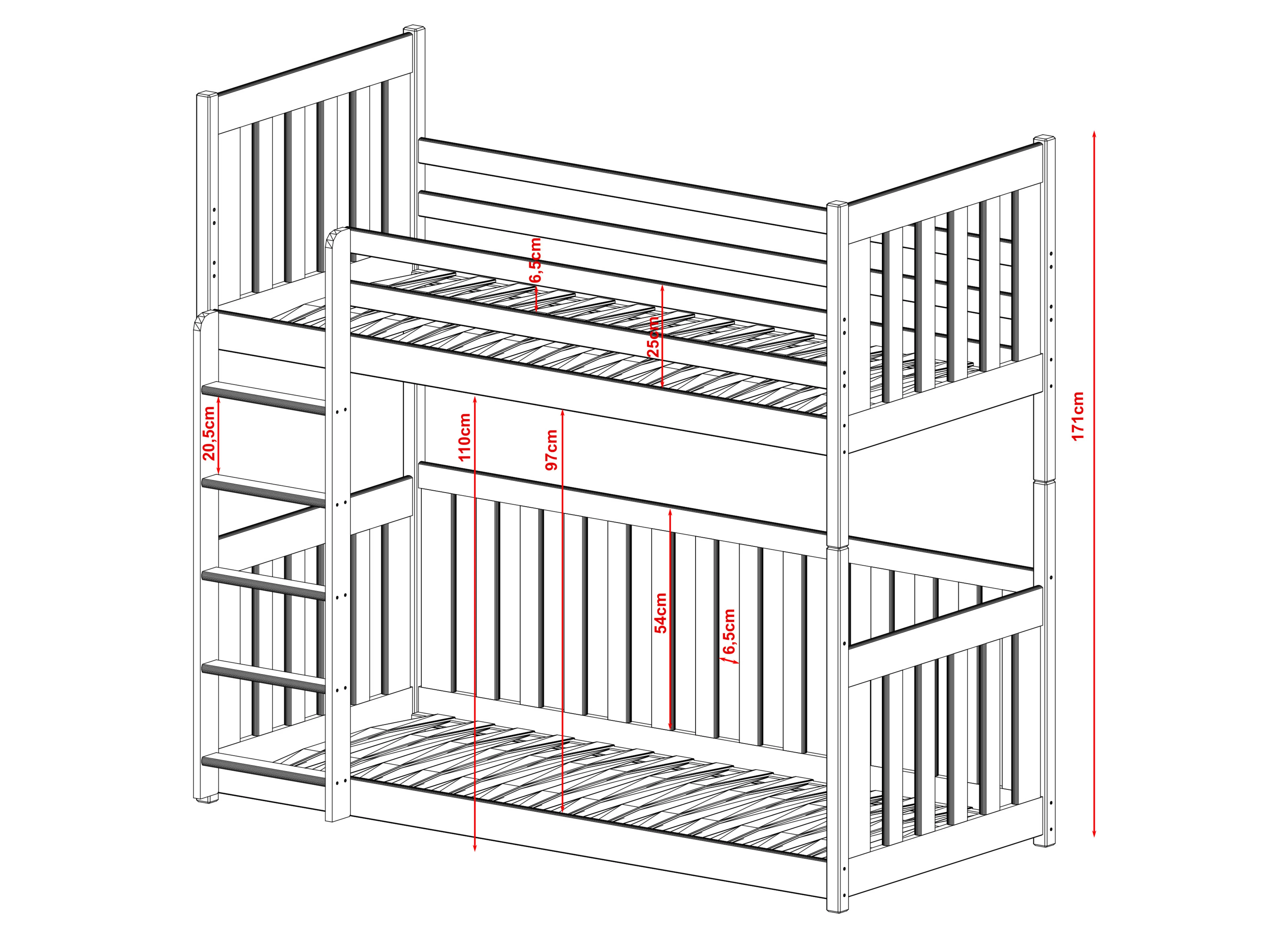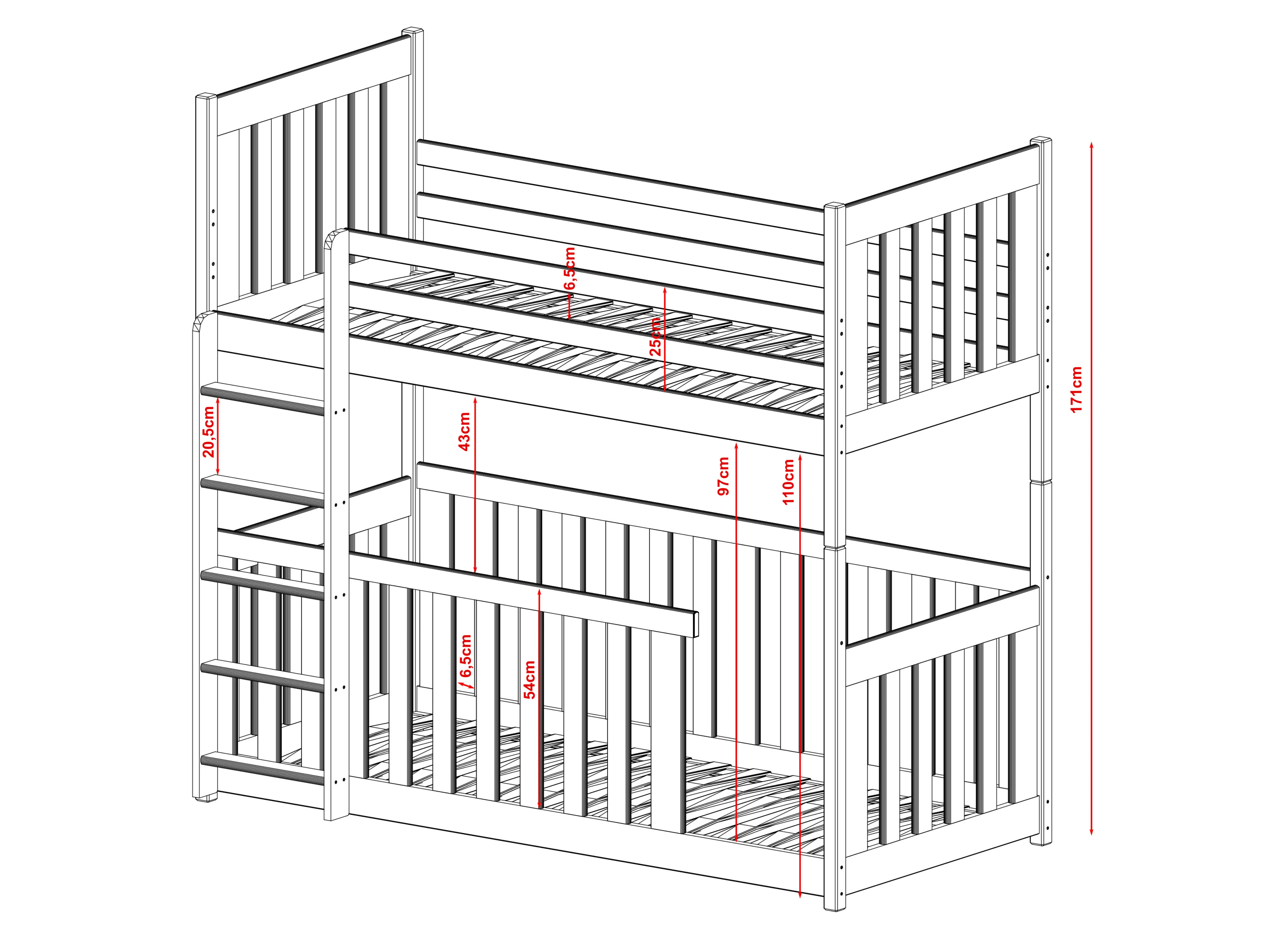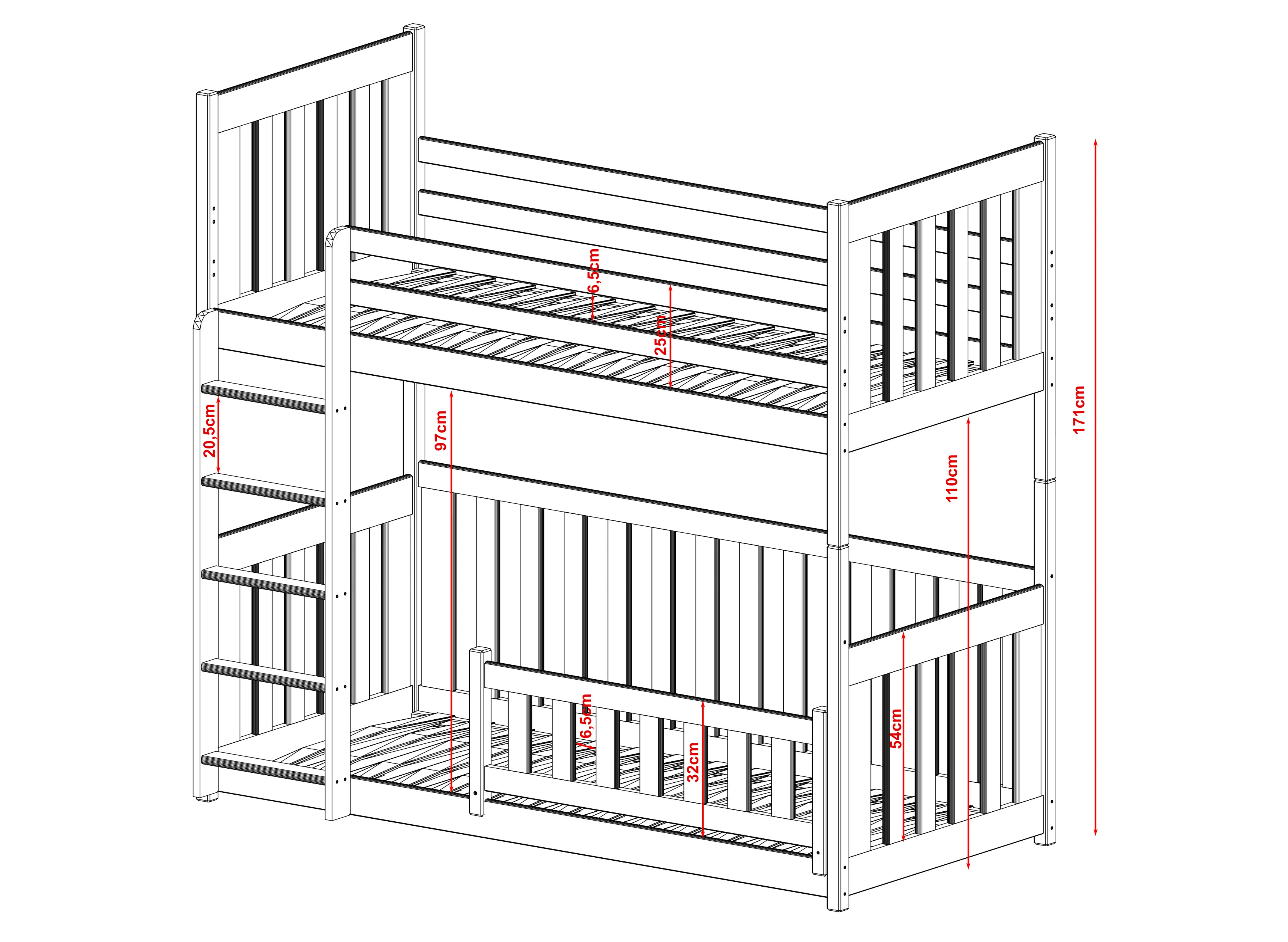 Het stapelbed CRIS is een ideaal voorstel voor twee kinderen. Wij hebben het meubelstuk gemaakt van robuust grenenhout, waardoor een lange levensduur gegarandeerd is. Het CRIS kinderbed combineert functionaliteit en mooi design. Hier hebben we gebruik gemaakt van houten leuningen en een ladder geïntegreerd. De kinderkamer komt tot leven met dit meubelstuk. Het CRIS stapelbed biedt vele configuratiemogelijkheden. U kunt bovendien kiezen uit vele boven- en ondermatrassen. Het is ook mogelijk om de hoogte en de leuning aan te passen. Dit model heeft werkelijk veel voordelen. Bovendien is het CRIS stapelbed solide gebouwd, waardoor het jarenlang meegaat. We hebben hem ook uitgerust met praktische leuningen en een veelzijdige ladder. Dankzij het design van dit stapelbed krijgt de kamer van uw kind een unieke sfeer. Onze CRIS staat synoniem voor comfort en functionaliteit. We hebben gezorgd voor een solide constructie van het meubelstuk en een aantal extra details om een uniek en uiterst comfortabel kinderbed voor uw kinderen te creëren.