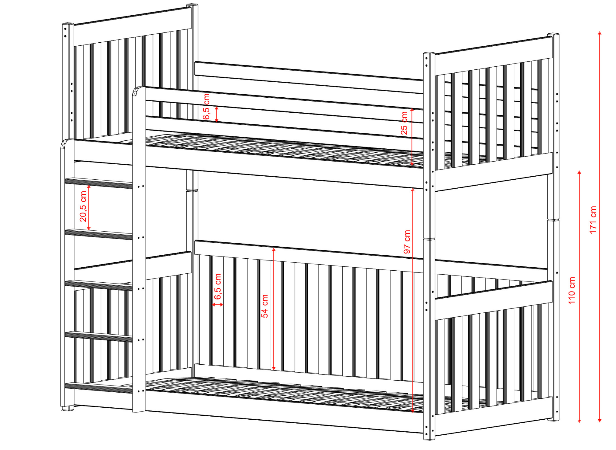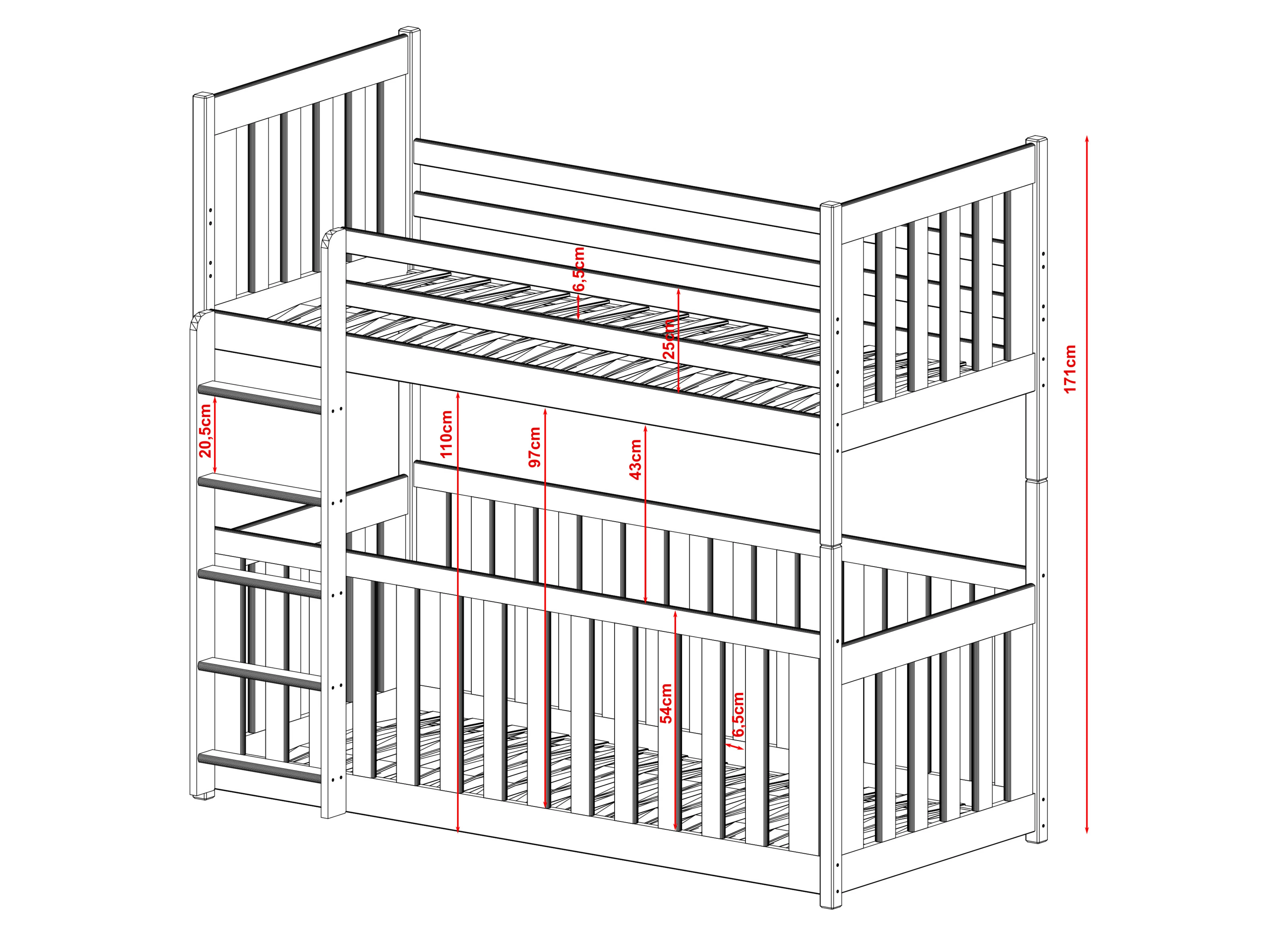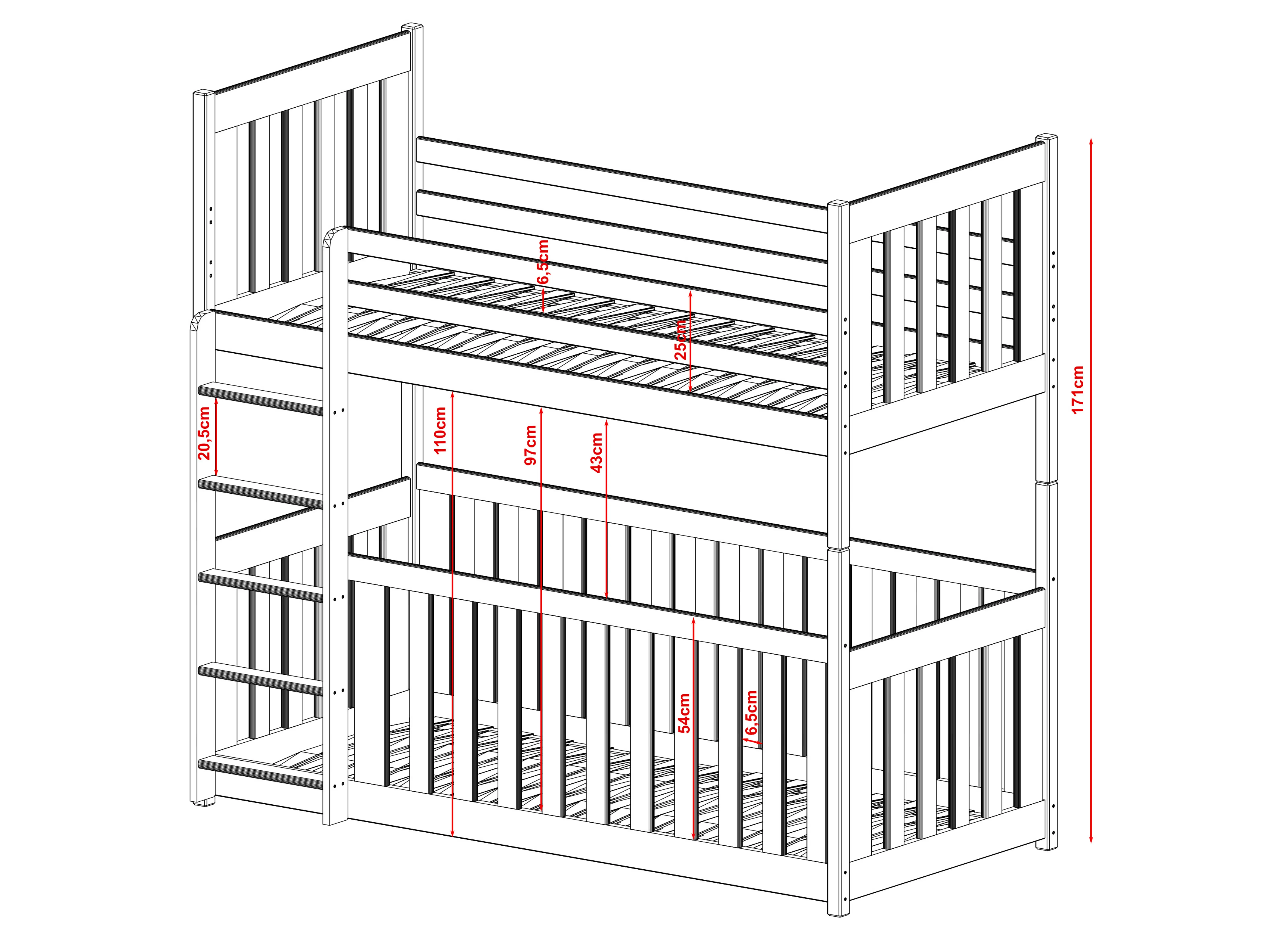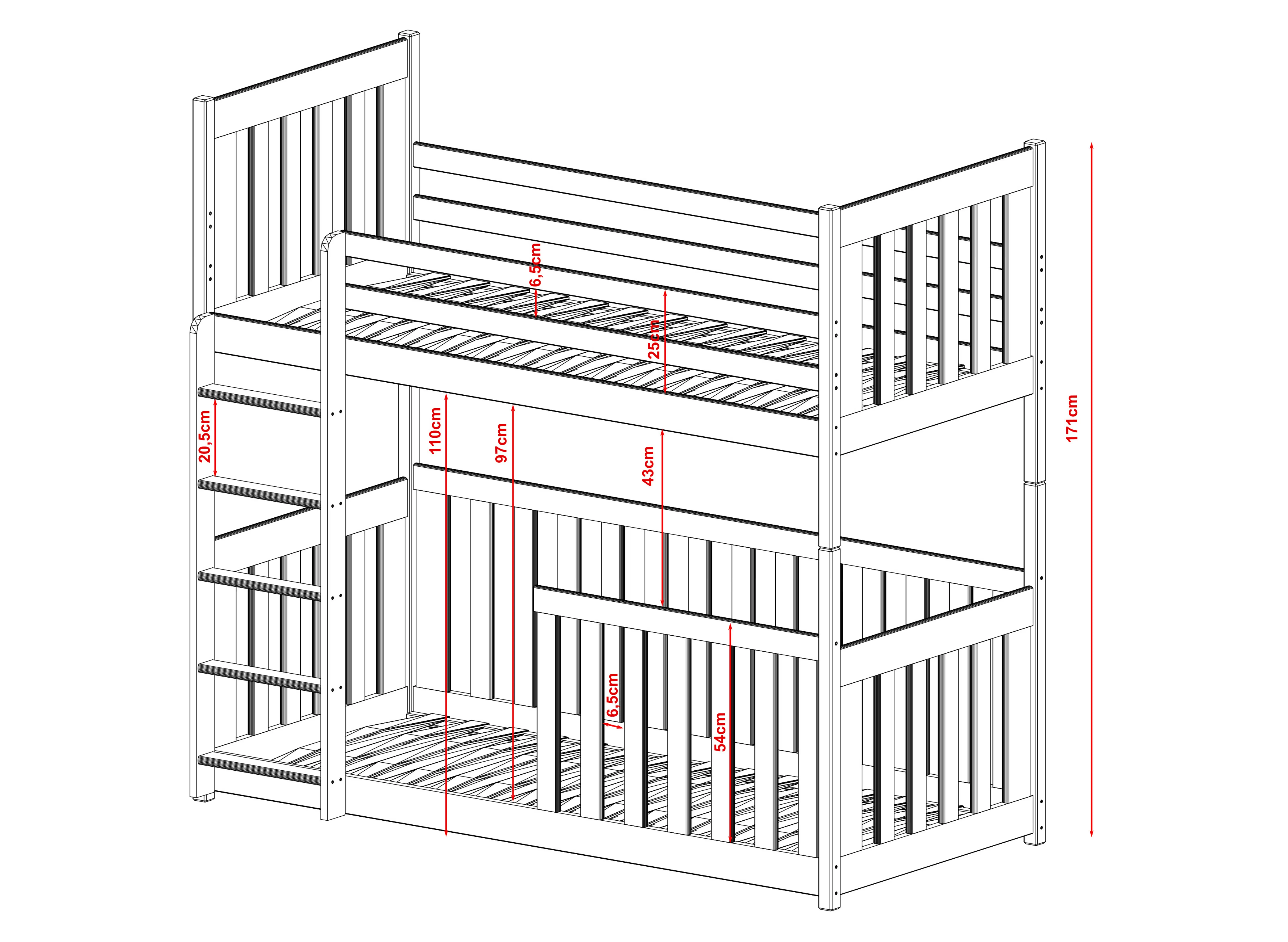 Het stapelbed CRIS is een ideaal voorstel voor twee kinderen. Wij hebben het meubelstuk gemaakt van robuust grenenhout, waardoor een lange levensduur gegarandeerd is. Het CRIS kinderbed combineert functionaliteit en mooi design. Hier hebben we gebruik gemaakt van houten leuningen en een ladder geïntegreerd. De kinderkamer komt tot leven met dit meubelstuk. Het CRIS stapelbed biedt vele configuratiemogelijkheden. U kunt bovendien kiezen uit vele boven- en ondermatrassen. Het is ook mogelijk om de hoogte en de leuning aan te passen. Dit model heeft werkelijk veel voordelen. Bovendien is het CRIS stapelbed solide gebouwd, waardoor het jarenlang meegaat. We hebben hem ook uitgerust met praktische leuningen en een veelzijdige ladder. Dankzij het design van dit stapelbed krijgt de kamer van uw kind een unieke sfeer. Onze CRIS staat synoniem voor comfort en functionaliteit. We hebben gezorgd voor een solide constructie van het meubelstuk en een aantal extra details om een uniek en uiterst comfortabel kinderbed voor uw kinderen te creëren.