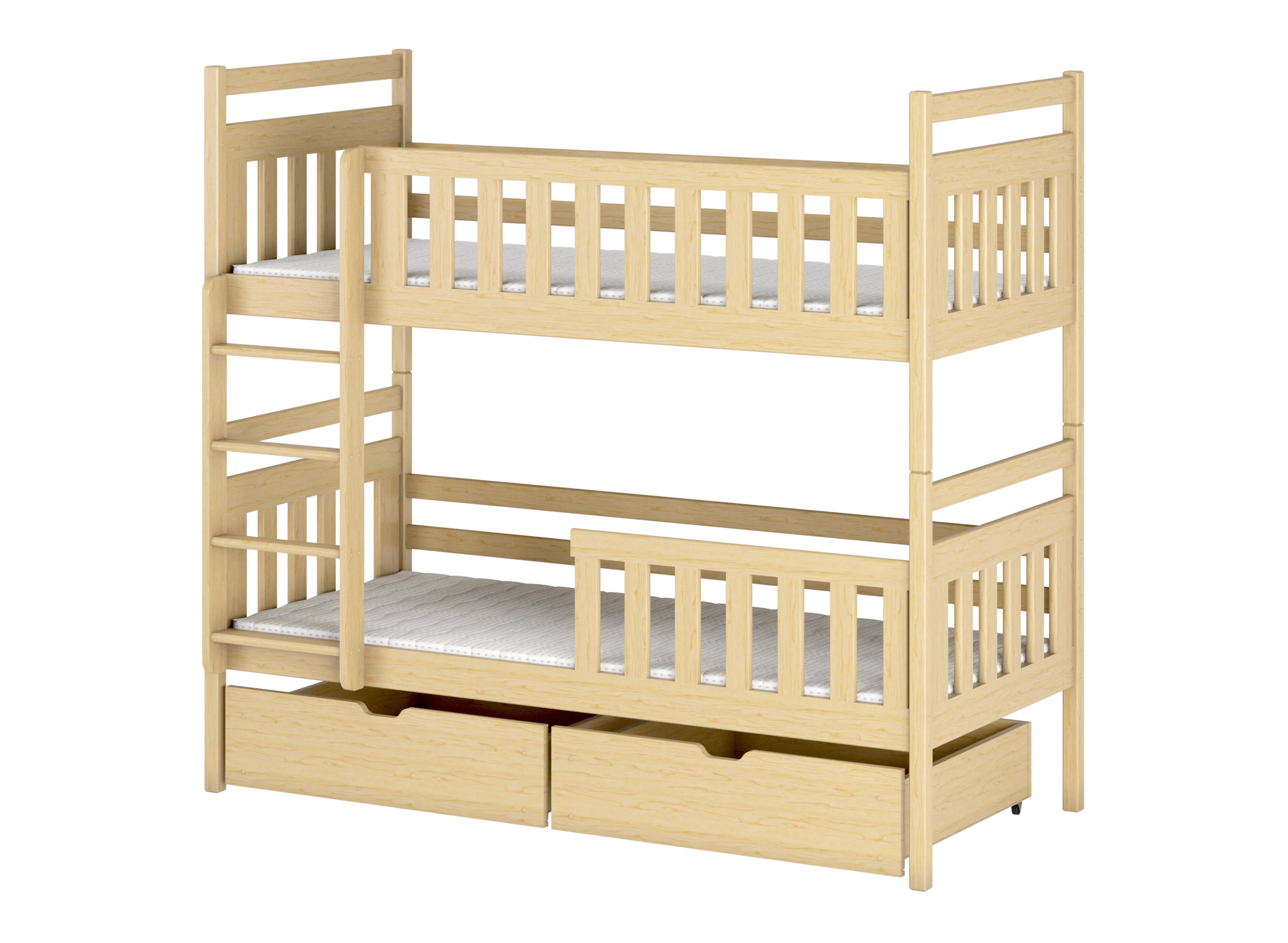 Het stapelbed MONIKA van grenenhout garandeert blije en uitgeruste gezichtjes van kleine slaapkoppen