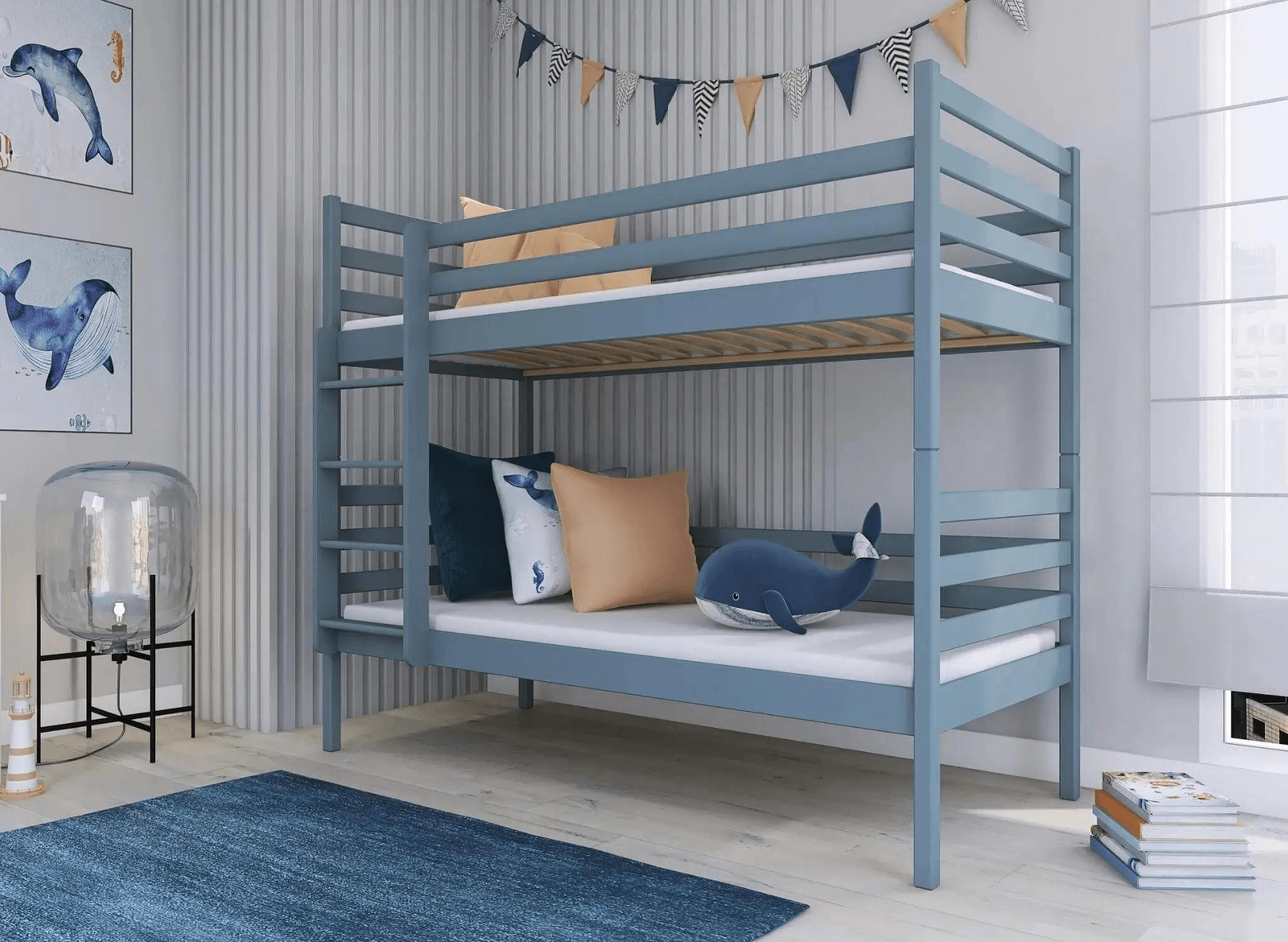 Het stapelbed NEMO kan naar wens worden aangepast en gepersonaliseerd. Bij ons kunt u een comfortabel matras kiezen en bepalen of u deze links- of rechtszijdig wilt hebben. Hierdoor kunt u ze perfect aanpassen aan het karakter en de afmetingen van de ruimte. Het stapelbed NEMO kan ook worden opgedeeld in twee aparte slaapplaatsen.