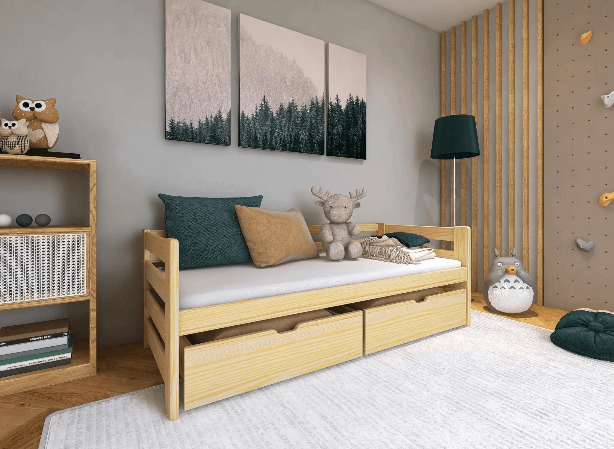 Als verantwoordelijke en zorgzame ouder weet u vast hoe belangrijk het is dat uw kind goed slaapt. Het helpt niet alleen bij regeneratie, maar versterkt ook het immuunsysteem en ondersteunt een goede ontwikkeling van de hersenen. Het kiezen van de juiste matras voor het ERGO kinderbed is bij Lano Meubels een hele eenvoudige opgave. U kunt de maat en hardheid van de matras zelf aanpassen. Wij zijn ervan overtuigd dat u de beste keuze maakt voor uw geliefde kind, zodat hij of zij lekker kan slapen. Wij zijn ons ervan bewust hoe veeleisend onze klanten zijn. Het kiezen van het juiste kinderbed voor een meisje of een jongen is immers geen gemakkelijke opgave. U moet niet alleen letten op de veiligheid, maar ook op de vraag of het kind het bed dat u hebt uitgekozen, fijn vindt. U hoeft zich geen zorgen te maken. Bij Lano Meubels hebben we ervoor gezorgd dat we het ERGO kinderbed van de beste kwaliteit grenenhout hebben gemaakt. Bovendien zorgt de FLEX lattenbodem voor een correcte afstelling van de matras. We twijfelen er niet aan dat het kinderbedje een fundamenteel element is van de kamerinrichting voor deze kleine ontdekkingsreiziger.