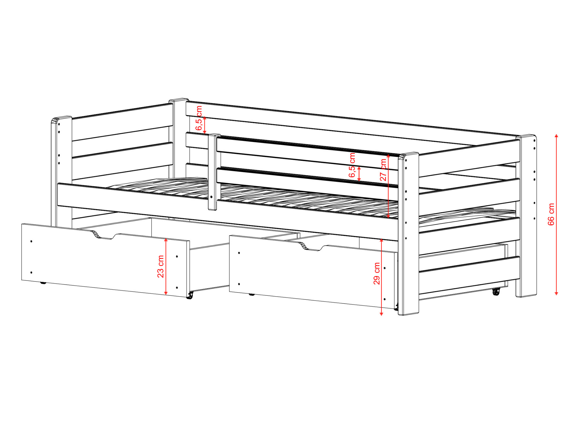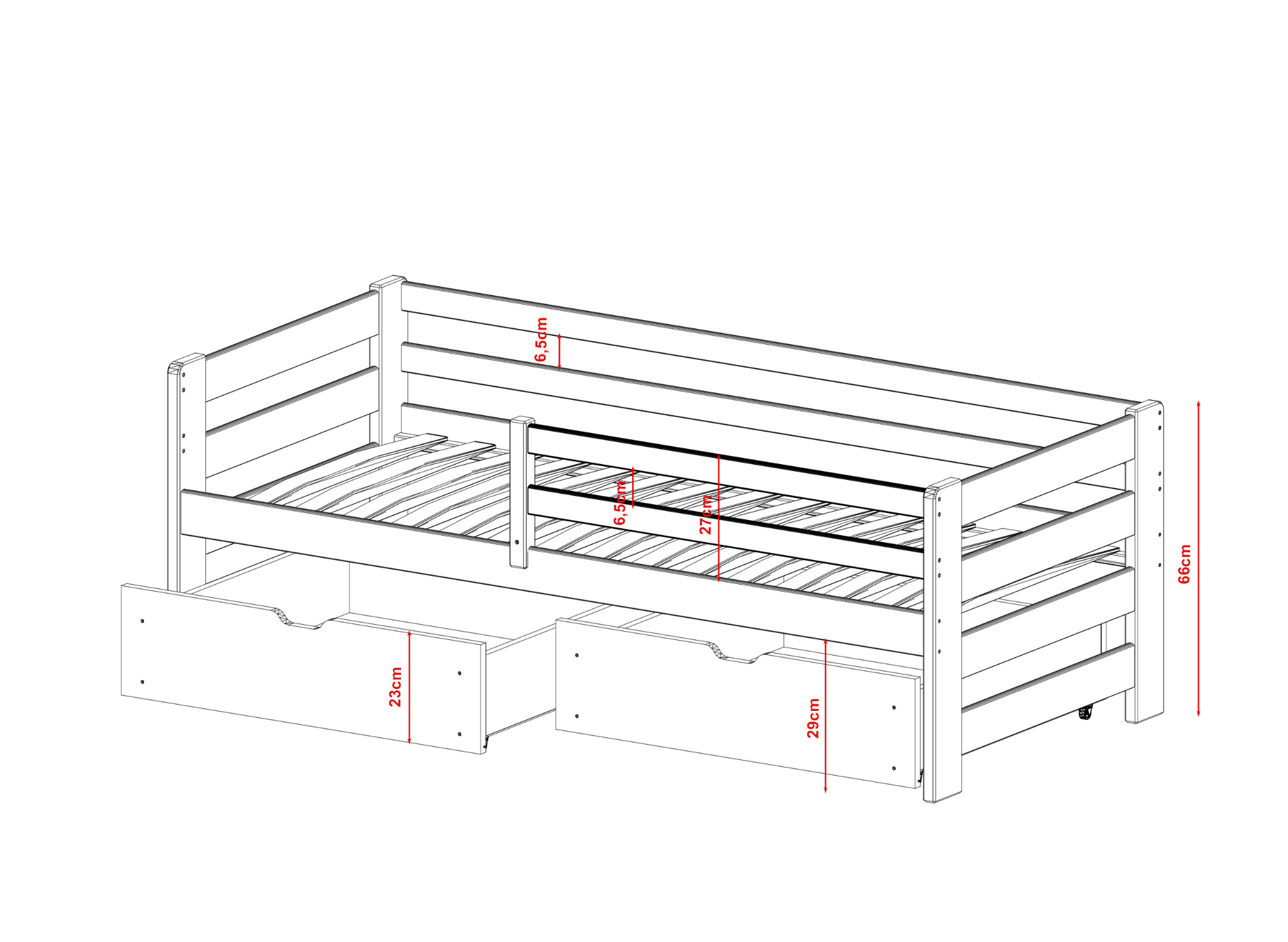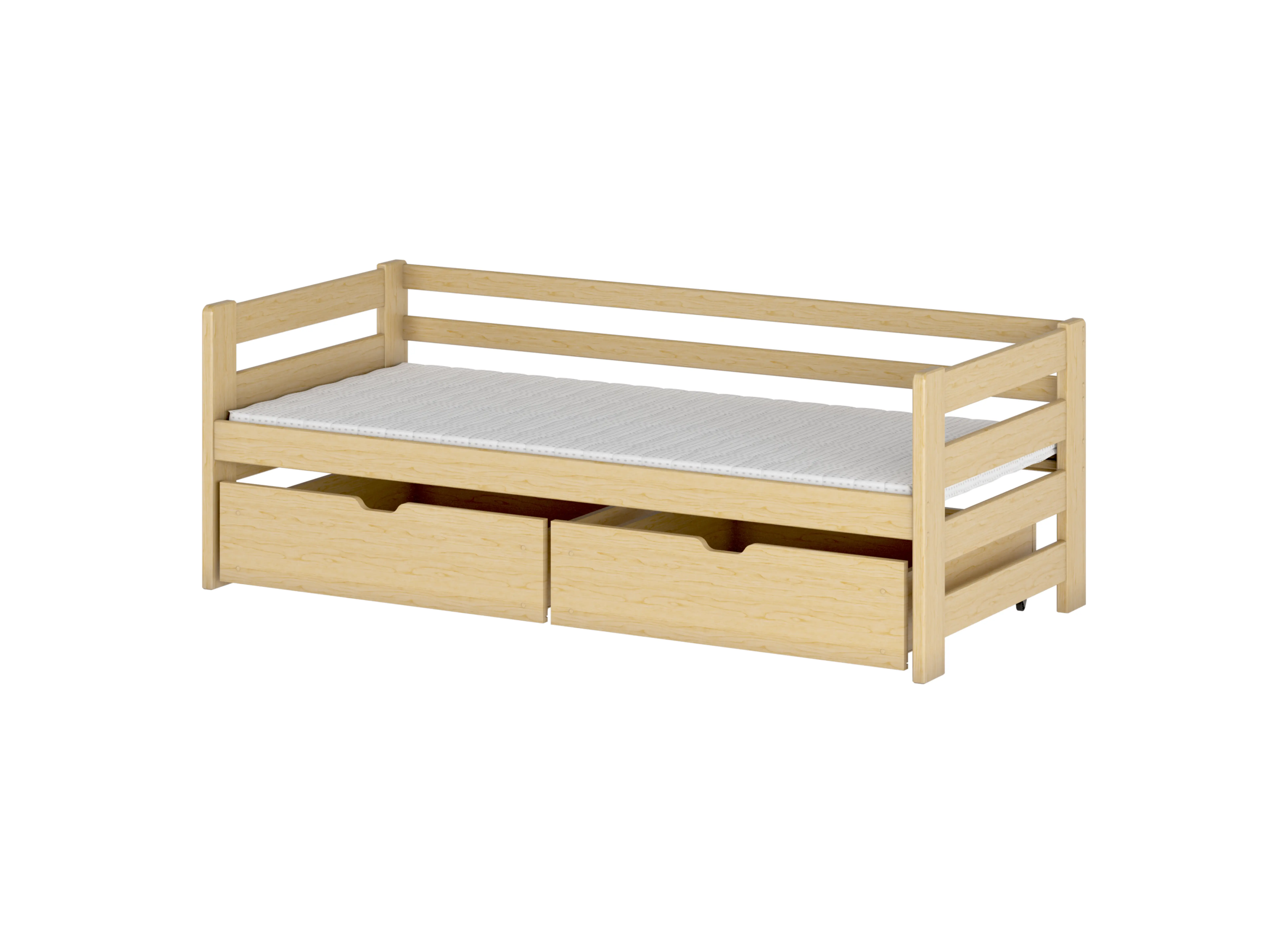 Naarmate de peuter groeit, ontstaat het probleem van het verschonen van het bed. Een kind in de voorschoolse leeftijd heeft immers heel andere behoeften dan een kind in de kleuterleeftijd. Wij helpen u graag bij het kiezen van het juiste kinderbed voor de behoeften van uw kind. Ontdek alle kenmerken van ons ERGO-model en vertrouw op de hoogste kwaliteit die verborgen zit in dit klassieke product. De beste keuze voor uw kind houdt ook rekening met zijn of haar voorkeuren en wensen. Ongeacht of u op zoek bent naar een meisjesbed of een jongensbed, het model ERGO is de juiste keuze. Het frame, geheel gemaakt van grenenhout en afgewerkt met kindveilige lak, past perfect in elke kinderkamer. Ons ERGO-kinderbedje ziet er serieuzer uit en uw kleuter zal zeker het gevoel hebben dat u hem of haar niet meer als een "baby" behandelt.