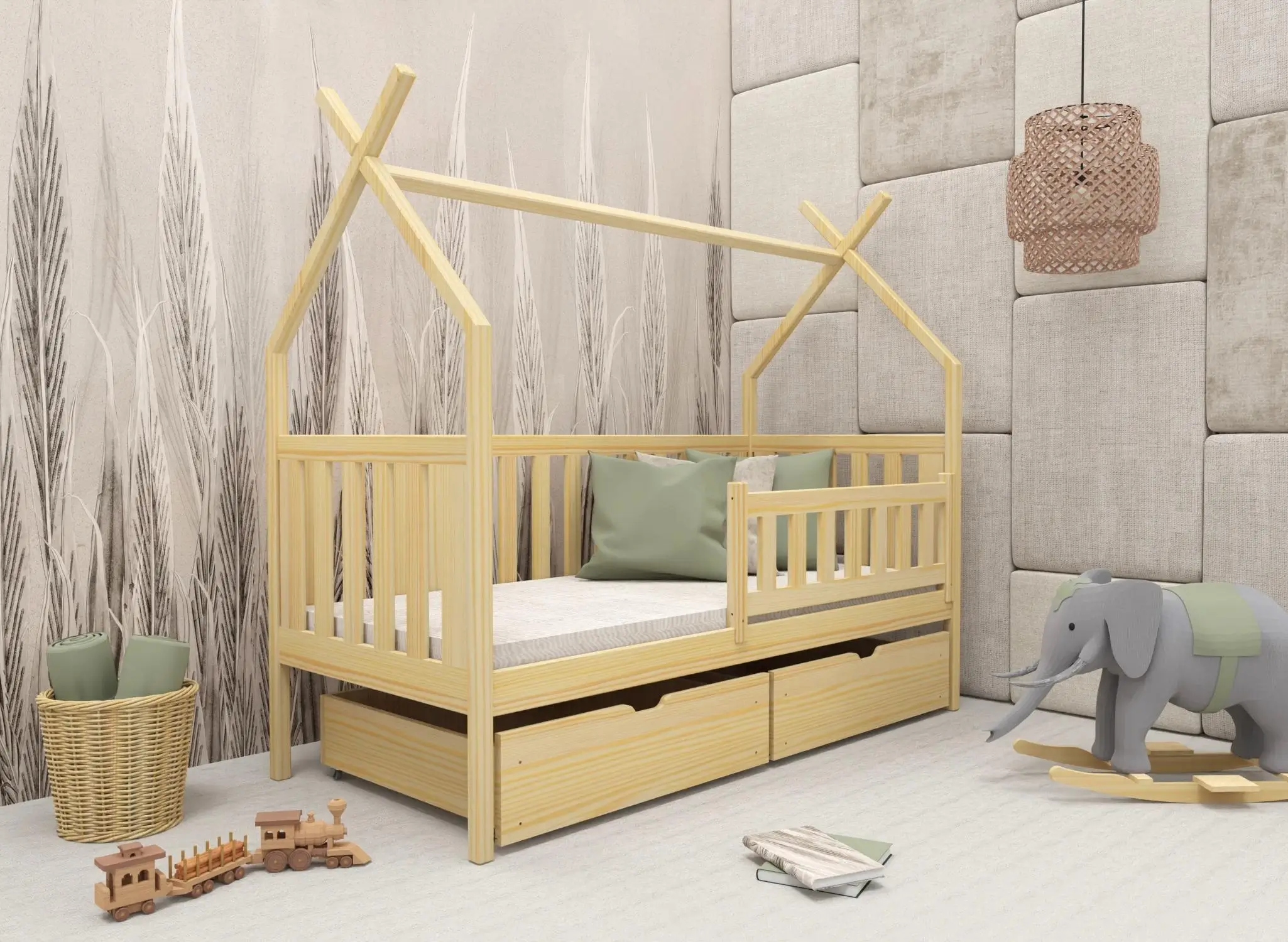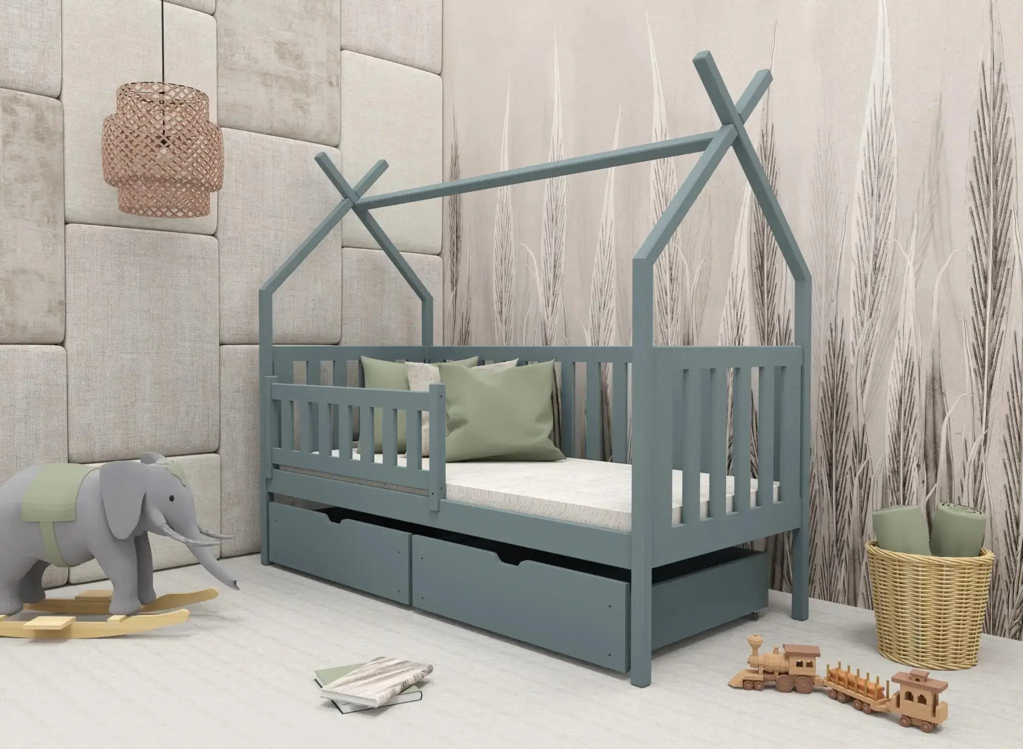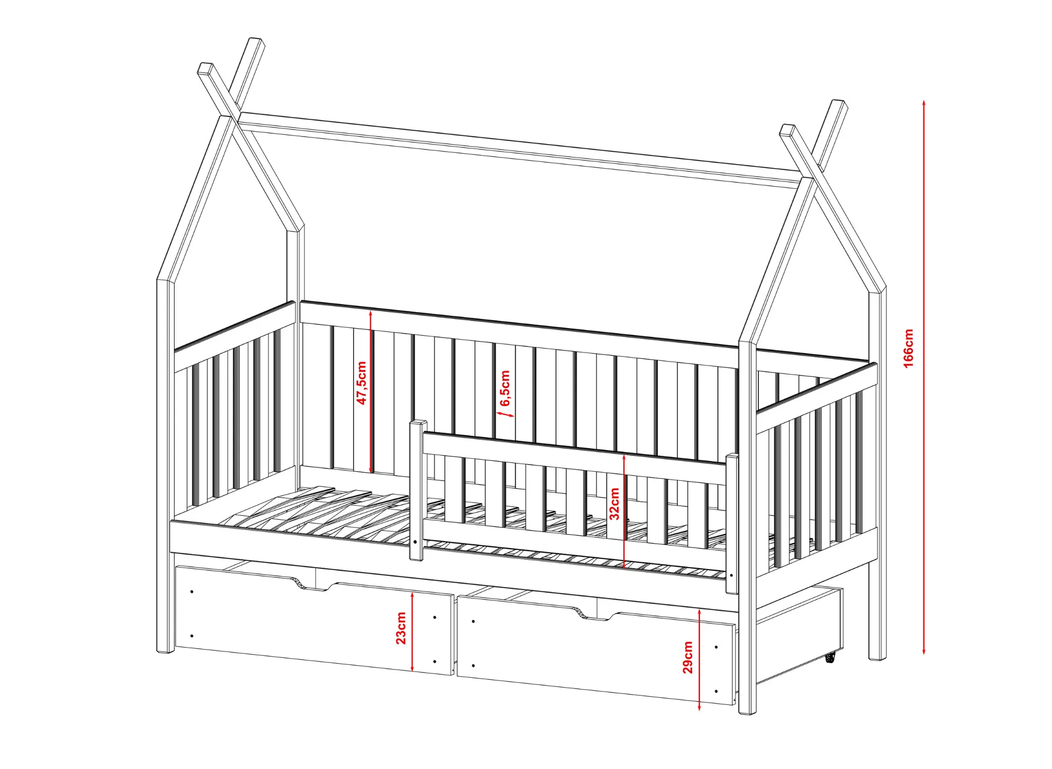 Goede oplossingen zijn oplossingen die zichzelf in de loop der jaren bewijzen. Ons Scandinavische tipi-stijl kinderbed SIMBA is een onmisbaar meubelstuk in de kamer van uw kleuter en schoolgaande kind. Ons model van het Tipi SIMBA kinderbed met lades kan meegroeien met uw kleintje. Laat het Simba Tipi Bed een plek worden waar uw kind graag alleen, met ouders of met vriendjes speelt. Wij twijfelen er niet aan dat uw kind dol zal zijn op zijn nieuwe SIMBA tipi-bed, dat doet denken aan een tent, en dat het zijn kamer zal transformeren.