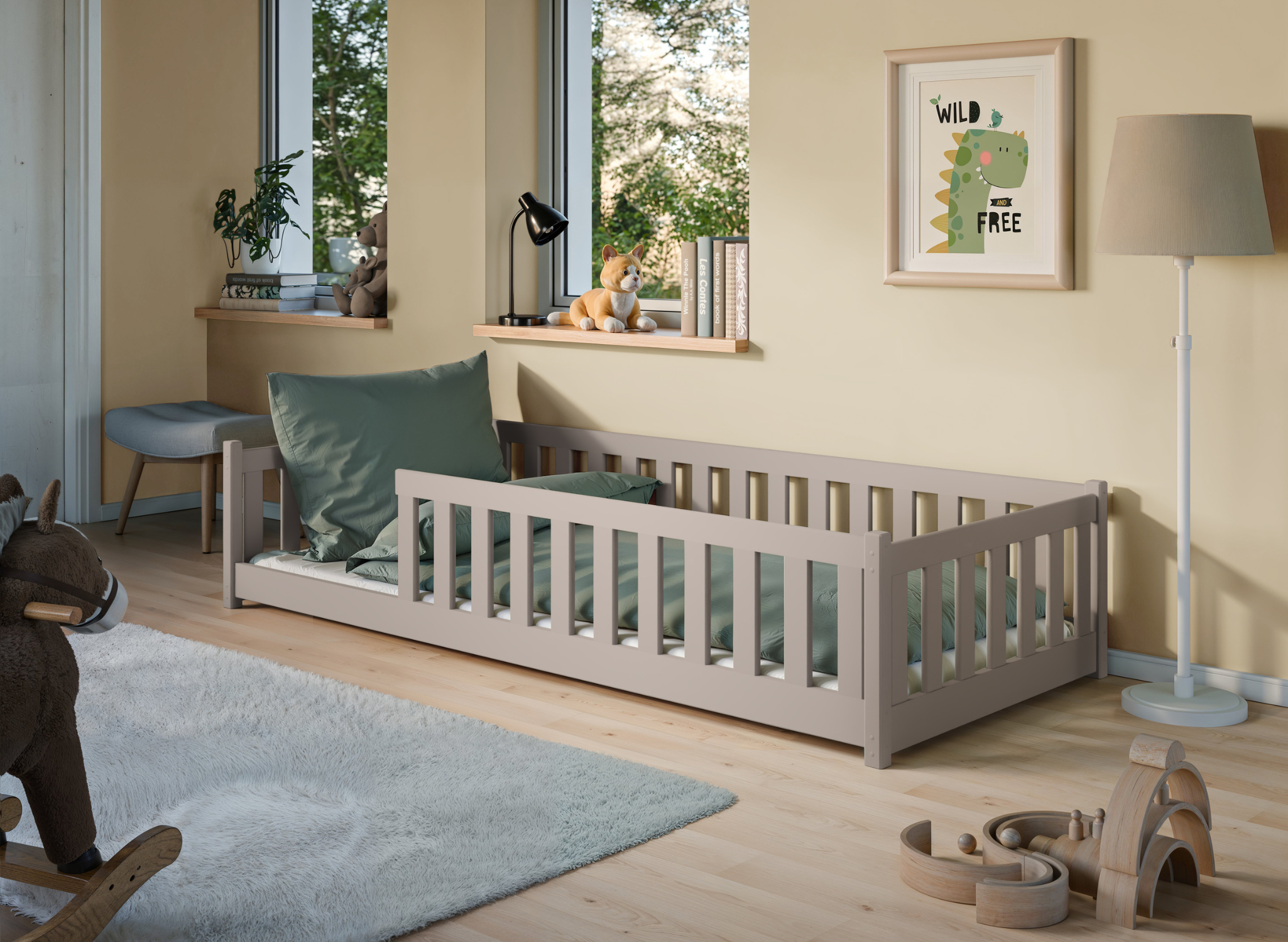 - bevordert de zelfstandigheid van je peuter – het kinderbed maakt zelfstandig in- en uitstappen mogelijk zonder valgevaar. Zo wint je kind zelfvertrouwen en geloof in eigen kunnen;