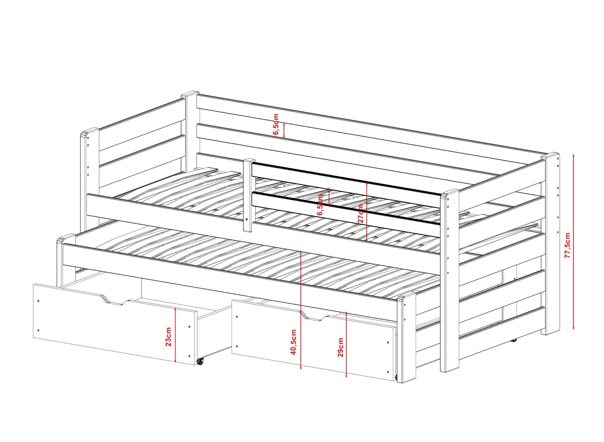 | Matrasbreedte voor uitschuifbaar gedeelte | 80 cm |