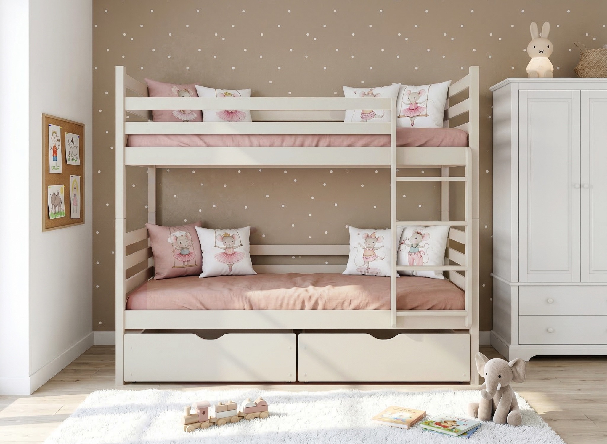 Katoenkleurig stapelbed NEMO 80x200 – ideaal voor elke kamer van kleine slaapkopjes