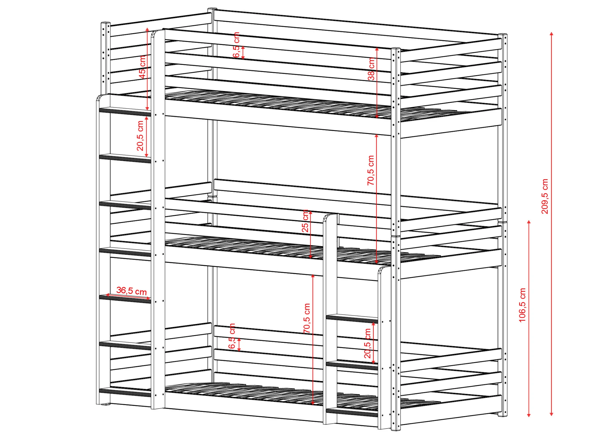 Het is niet eenvoudig om een kinderkamer zo in te richten dat er ruimte is voor spel, maar ook voor studie en andere activiteiten. Als ouders is het de moeite waard om te overwegen of u niet moet kiezen voor een stapelbed van Lano Meble. Ons TED stapelbed is perfect voor de wat oudere kleintjes en garandeert hen een veilige nachtrust. Bekijk zeker alle voordelen van dit unieke stapelbed voor kinderen. Dankzij de maar liefst 3 slaapniveaus die in het TED stapelbed zijn ontworpen, is er plek voor iedereen. Misschien stoppen de kleintjes dankzij het stapelbed van Lano Meble wel met het zo vaak bezoeken van de slaapkamer van de ouders, omdat ze dol zullen zijn op hun nieuwe slaapplek. Het TED stapelbed voor de kinderkamer is een functionele oplossing met aandacht voor de kleinste details.